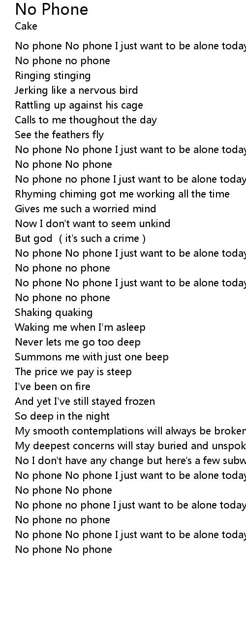 | [00:59.79] | No phone No phone I just want to be alone today |