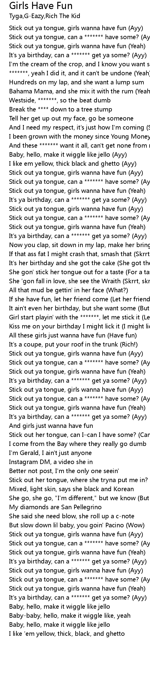 | [00:59.19] | Stick out ya tongue, girls wanna have fun Ayy |