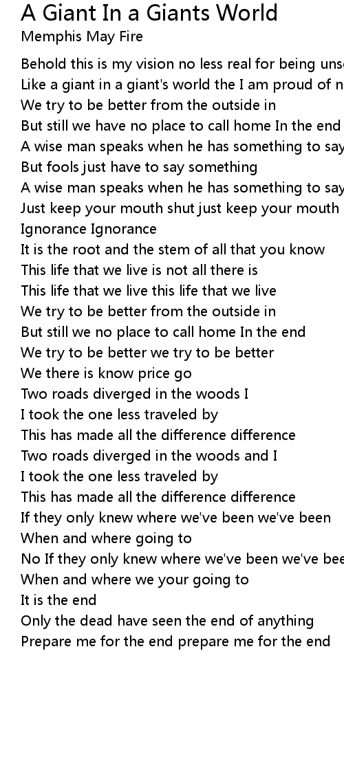Like a giant in a giant's world the I am proud of nothing |