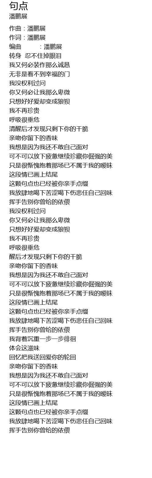 | [00:04.49] | 作曲:潘鹏展 |