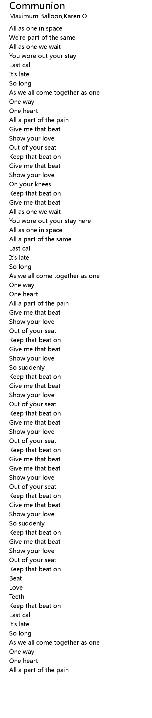 Communion 歌词