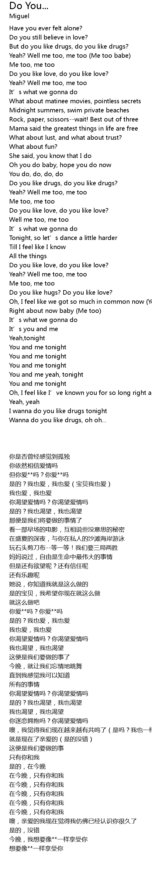 | [00:38.566] | But do you like drugs, do you like drugs? |