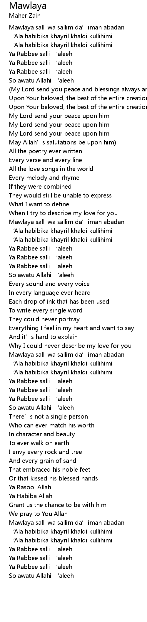 | Mawlaya salli wa sallim da’iman abadan | |