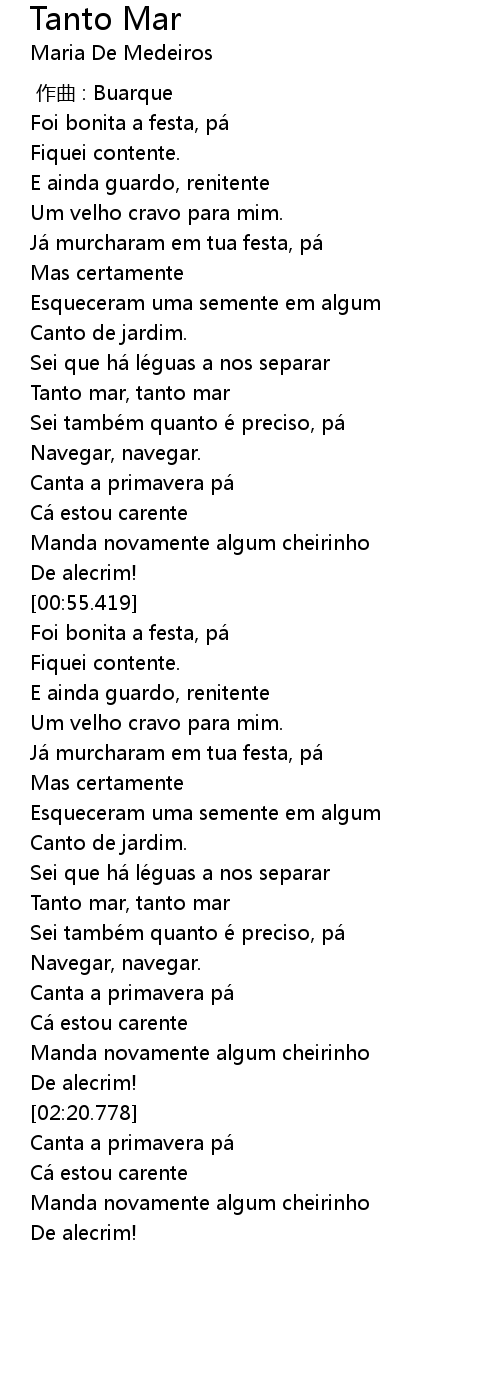 | [01:56.474] | Sei que ha le guas a nos separar |