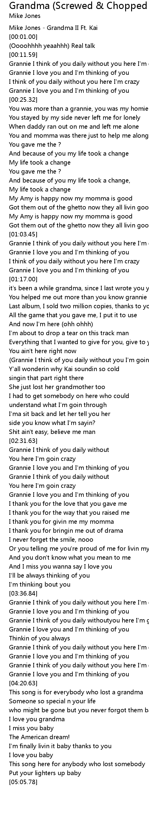 Grannie I think of you daily withoutyou here I'm goin crazy |