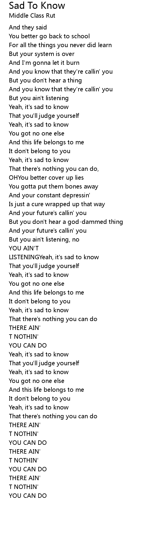 Sad To Know 歌词