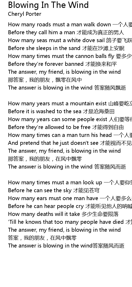 | 歌曲 | Blowing In The Wind |