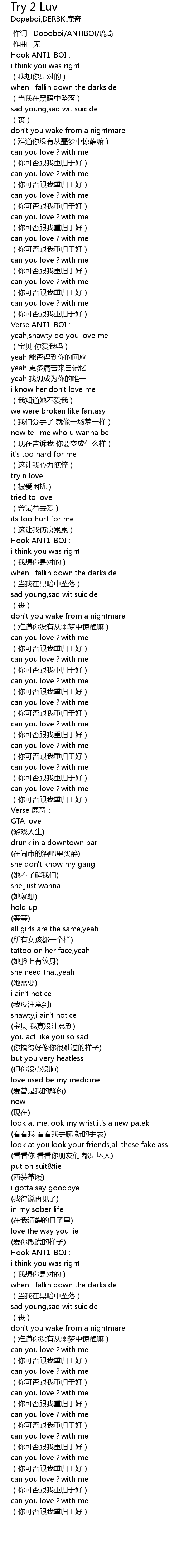Try 2 Luv 歌词