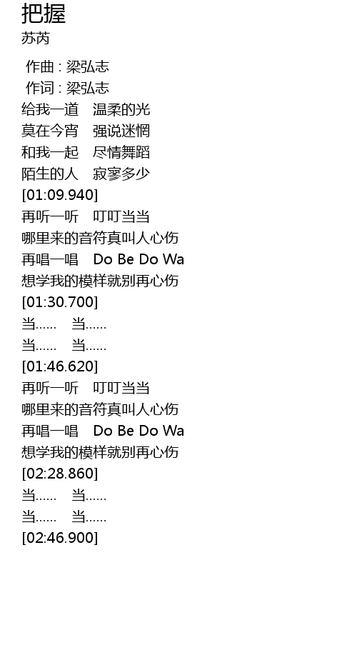 | [00:00.00] | 作曲 : 梁弘志 |