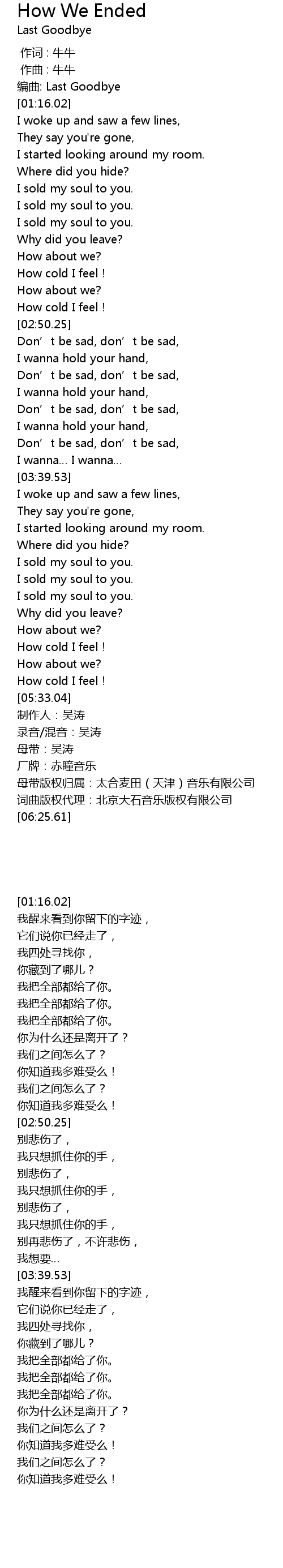 | [01:15.07] | biān qǔ: Last Goodbye |