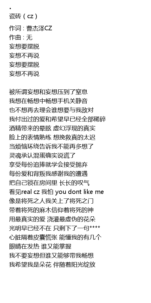 | kàn jiàn real cz wǒ pà you dont like me | |