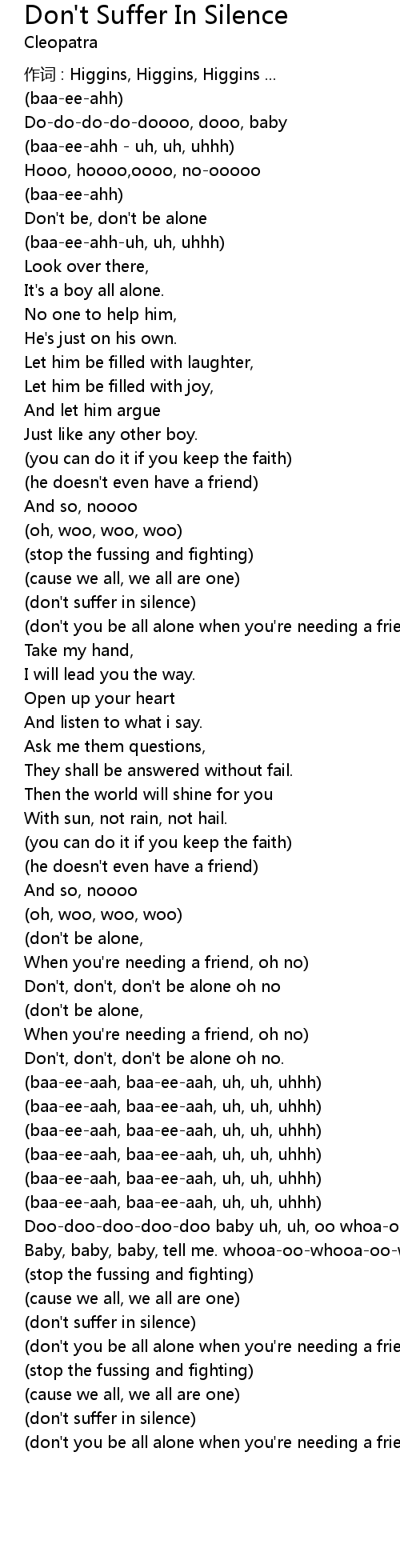 | 歌曲 | Don't Suffer In Silence |