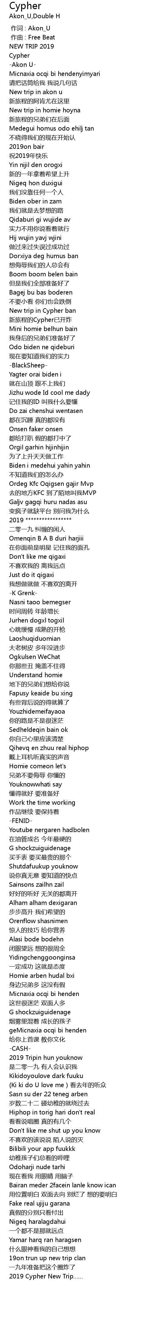 | [00:55.043] | 新旅程的Cypher已开炸 |