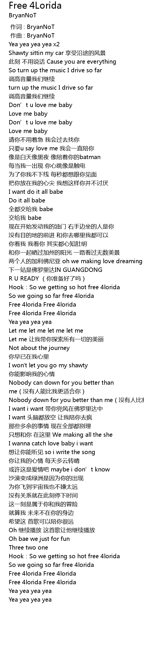 | [02:10.526] | I want i want 带你兜风在佛罗里达中 |