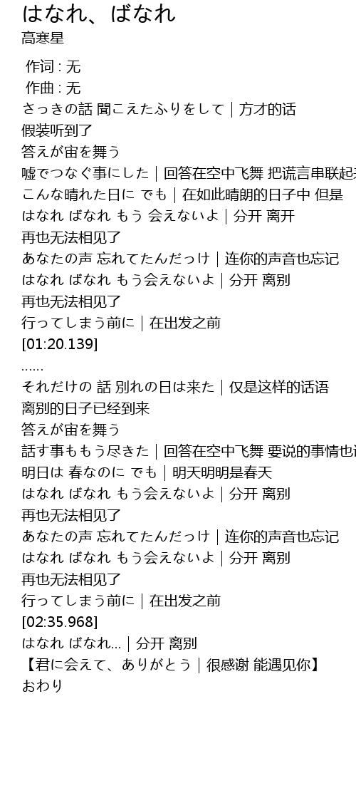 | [02:43.700] | はなれ ばなれ...|分开 离别 |