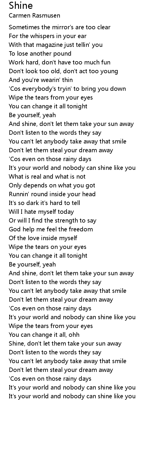 Shine, don't let them take your sun away |
