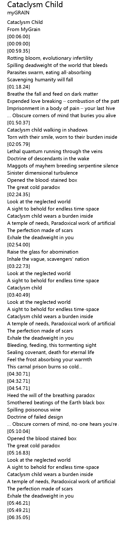 | [00:00.00] | Cataclysm Child |