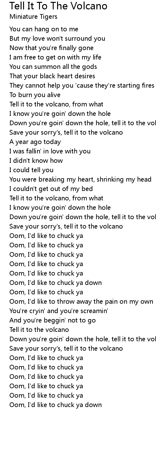 Tell it to the volcano, from what |