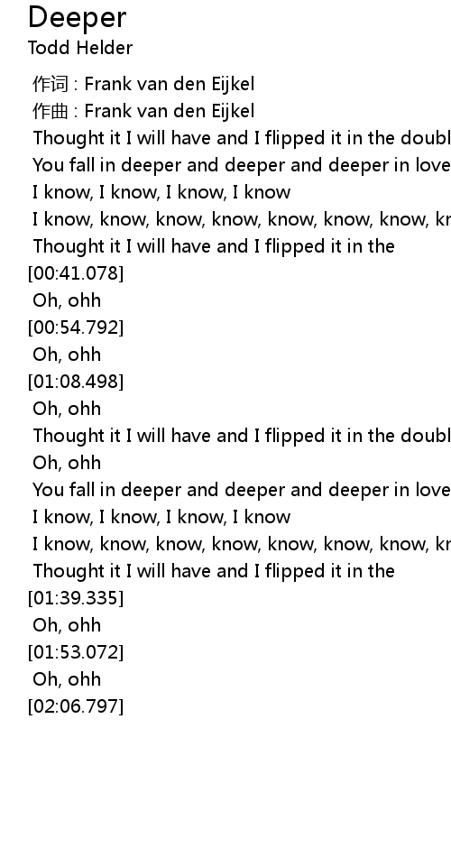 | [01:18.718] | You fall in deeper and deeper and deeper in love |