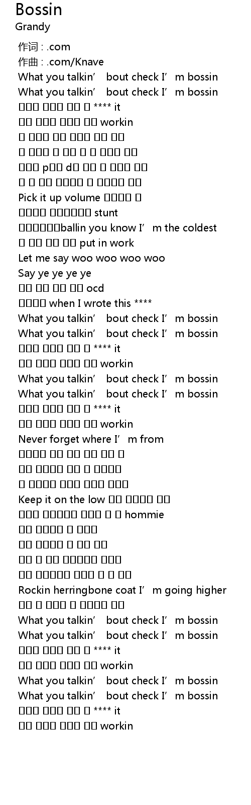 | [01:00.586] | What you talkin' bout check I' m bossin |