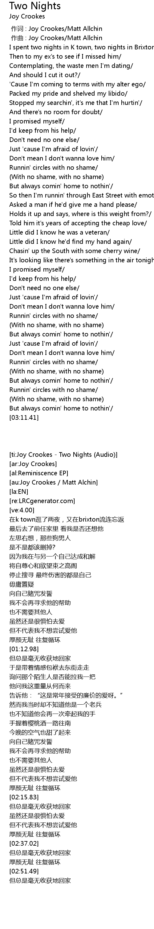| [ti:Joy Crookes - Two Nights (Audio)] | |