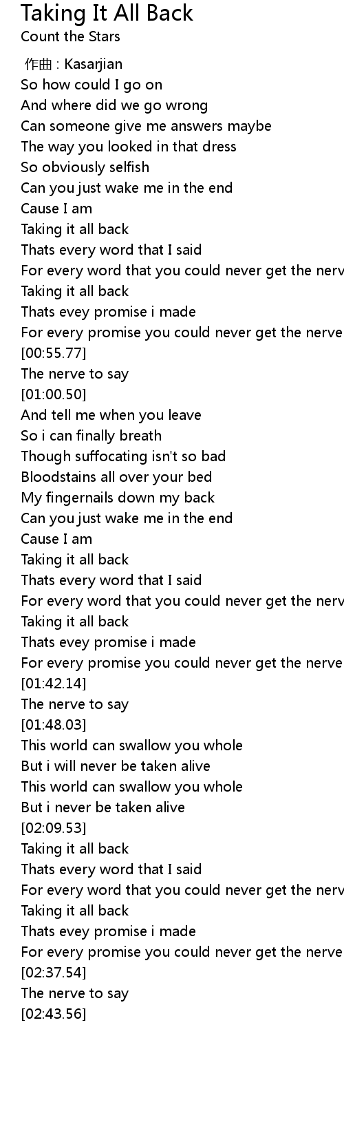 | [00:46.44] | Taking it all back |