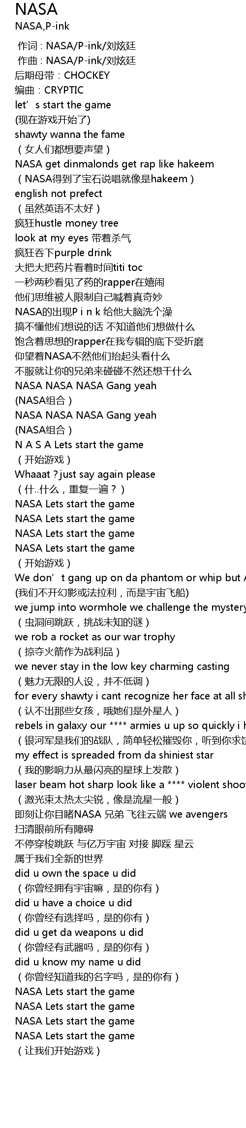 | [01:12.336] | NASA NASA NASA Gang yeah |