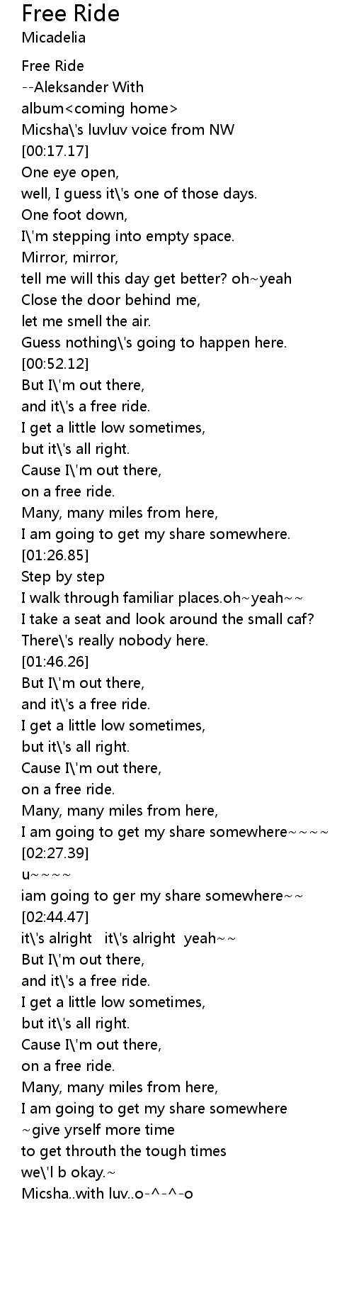 | [00:58.44] | and it\'s a free ride. |