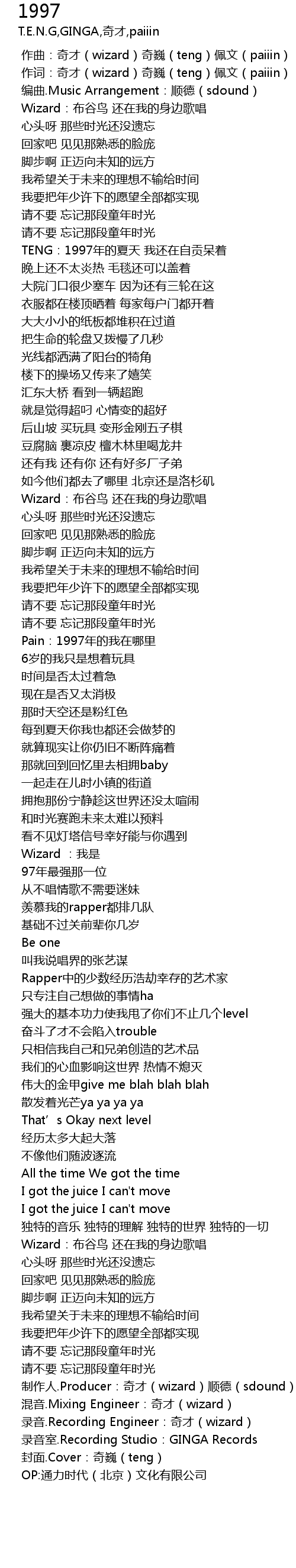 1997 歌词