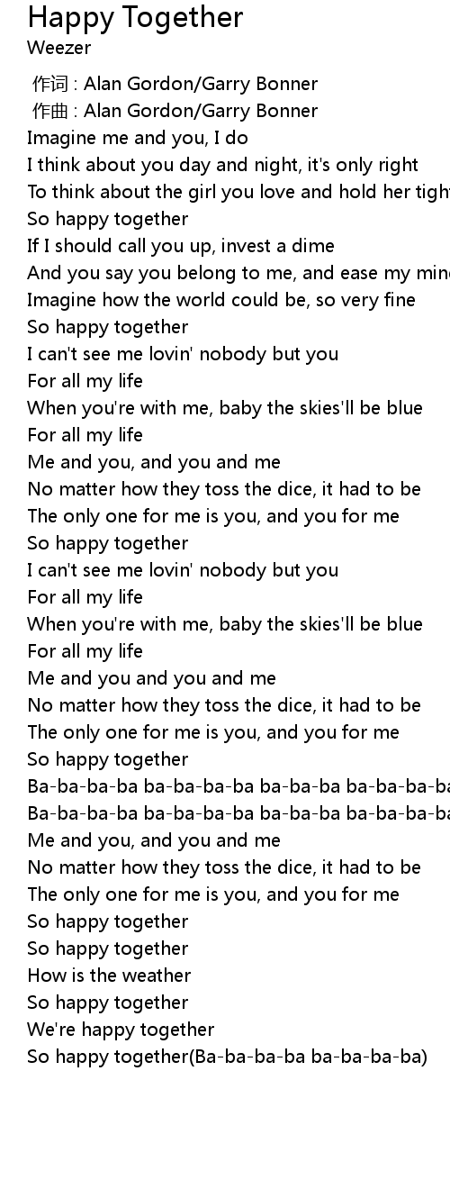 | [02:16.65] | So happy together(Ba-ba-ba-ba ba-ba-ba-ba) |