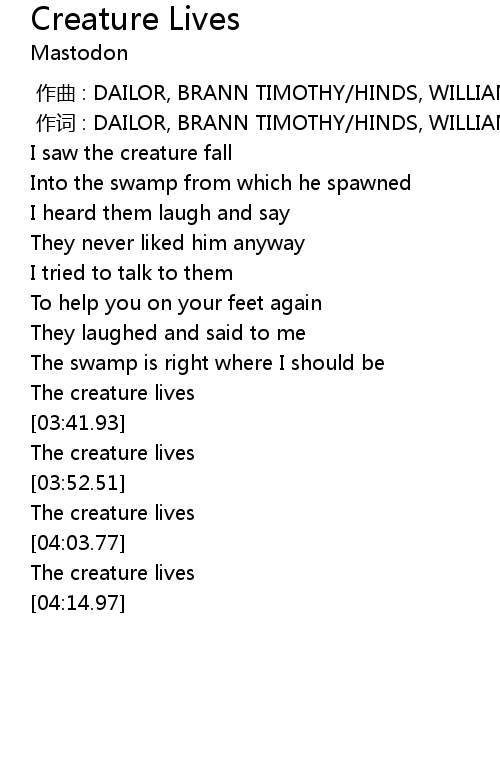 | [03:34.47] | The creature lives |