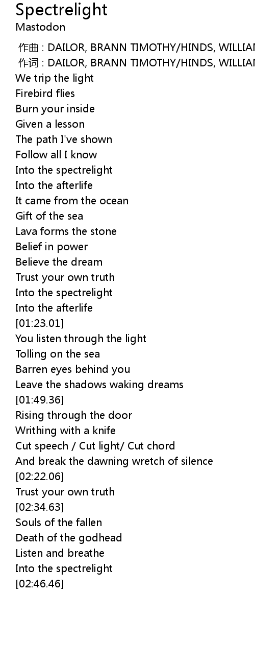 | [02:45.51] | Into the spectrelight |