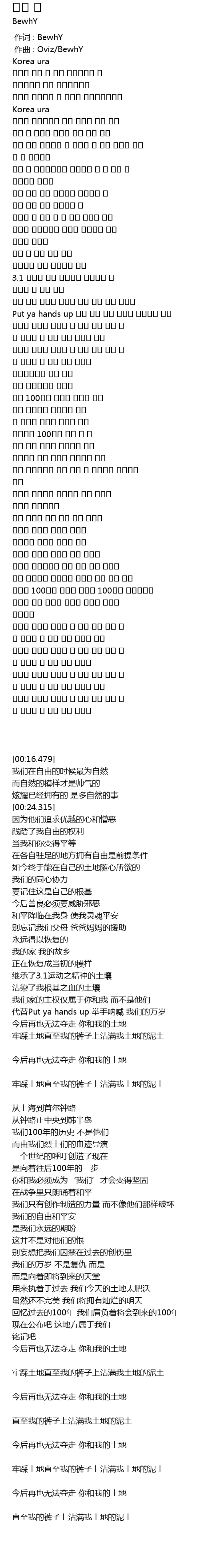 | [02:34.905] | 이제는 절대로 가져갈 수 없어 너와 나의 땅 |
