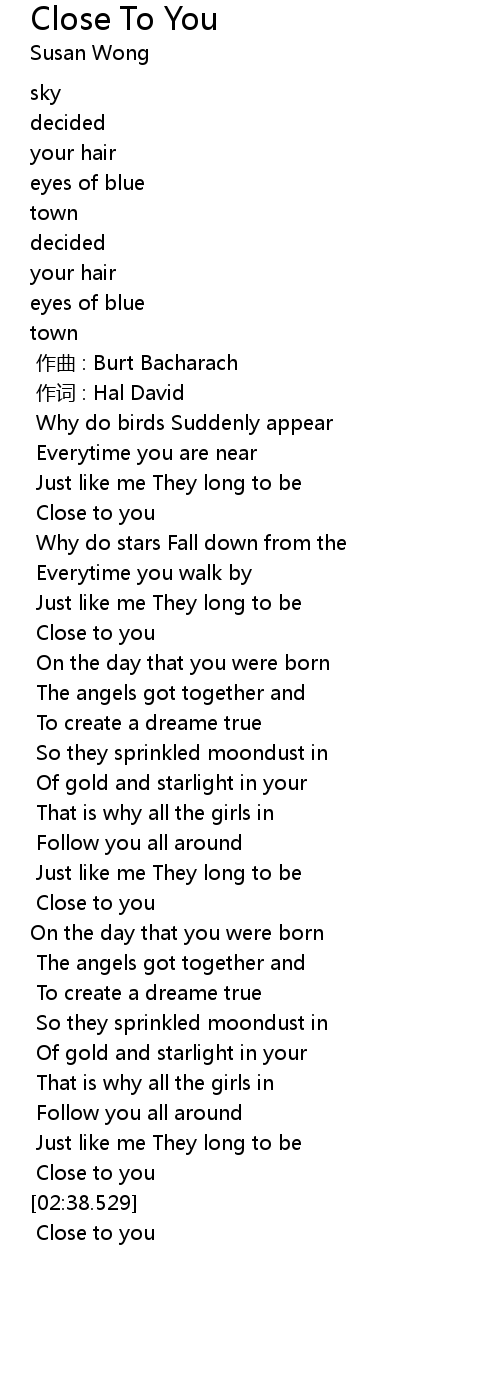| [02:35.299] | Close to you |