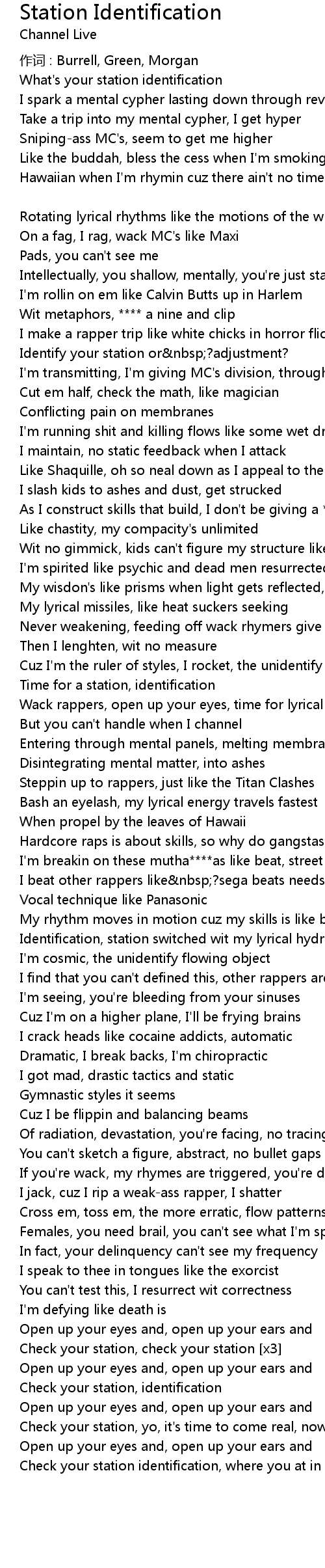| I'm transmitting, I'm giving MC's division, through diction | |