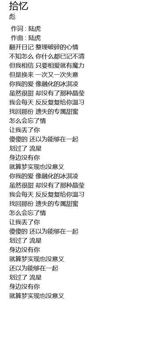 | [00:00.000] | 作词 : 陆虎 |