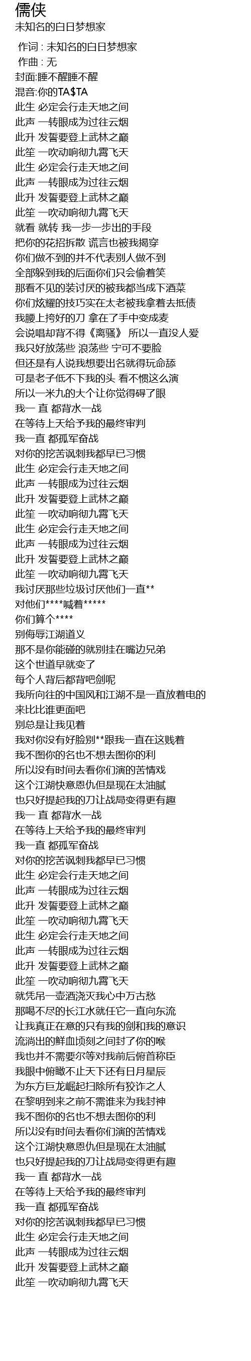 | [01:55.923] | 这个江湖快意恩仇但是现在太油腻 |