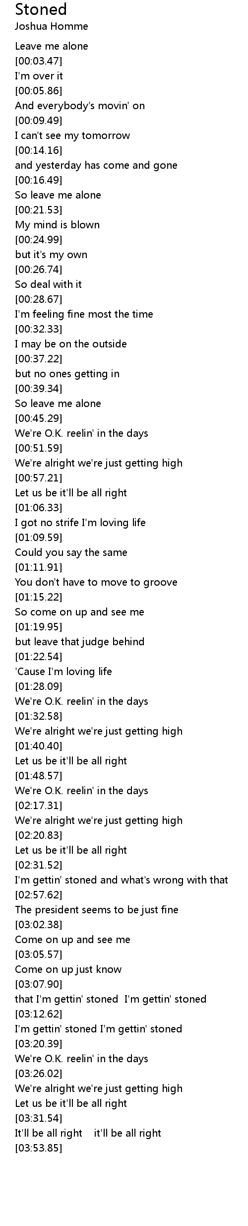 I'm gettin' stoned and what's wrong with that |