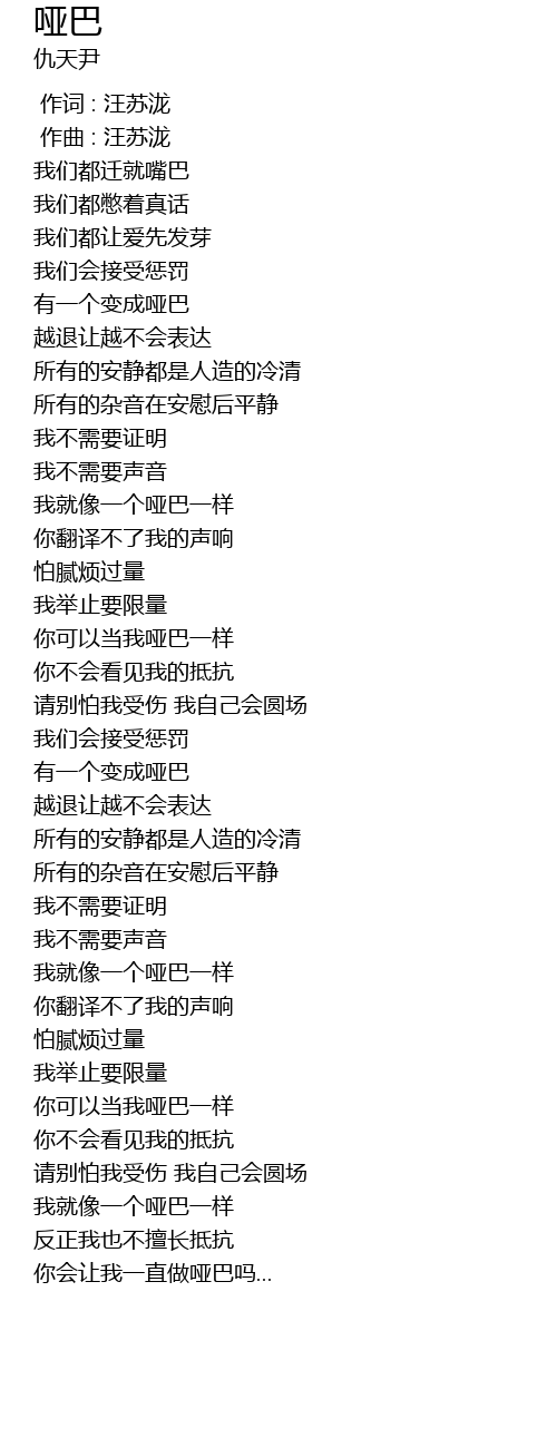 | [04:09.16] | 你会让我一直做哑巴吗... |