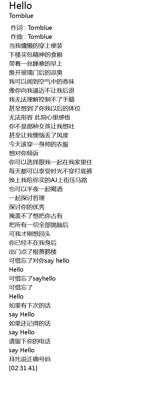 | [01:24.00] | kě xī wàng le duì nǐ say hello |