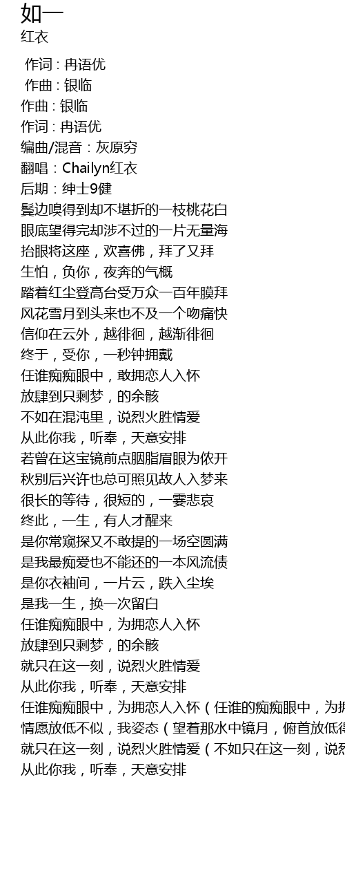 | [00:14.404] | 翻唱:Chailyn红衣 |