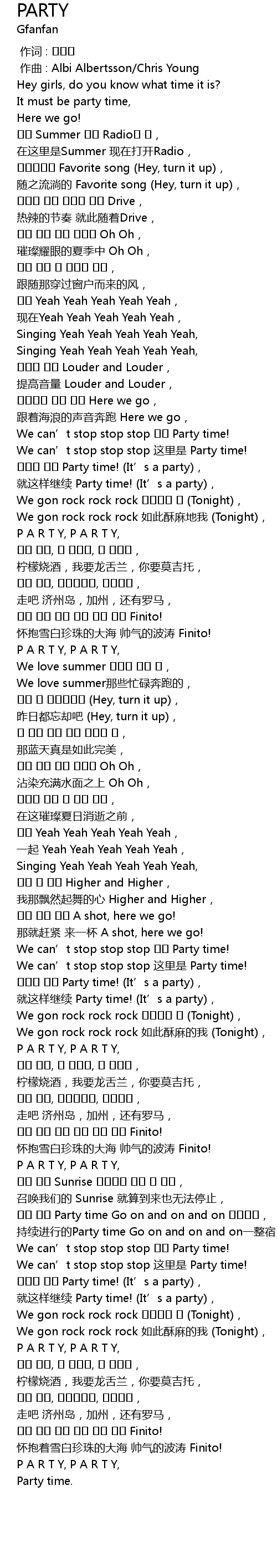 | [02:41.700] | We can’t stop stop stop 这里是 Party time! |