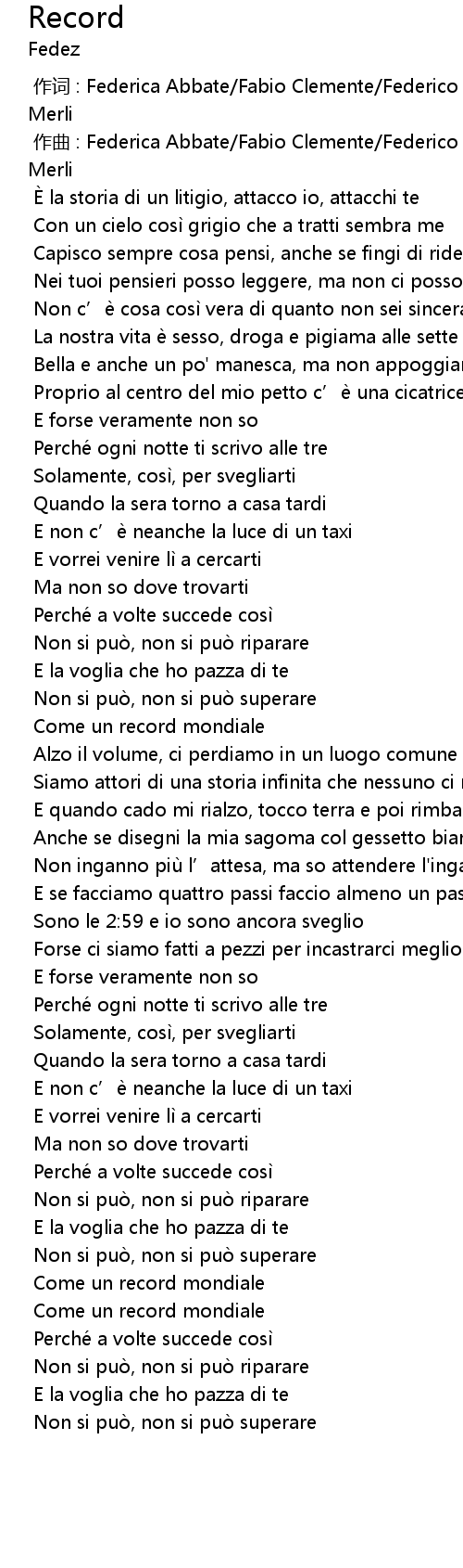 | [00:00.000] | 作词 : Federica Abbate/Fabio Clemente/Federico Lucia/Alessandro Merli |