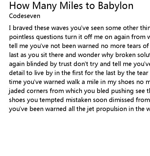 I braved these waves you've seen some other things details are so peculiar pointless questions turn it off me on again from which you cry don't try and tell me you've not been warned no more tears of frustration in the first for the last as you sit there and wonder why broken solution turn it off turn me on again blinded by trust don't try and tell me you've not been warned one more detail to live by in the first for the last by the tear drop from your eye first time you've warned walk a mile in my shoes no more tears from the bloodshed jaded corners from which you bled pushing see the distance walk a miles in my shoes you tempted mistaken soon dimissed from the thoughts you've been force-fed you've been warned all the jet propulsion in the world most nimble legs. |