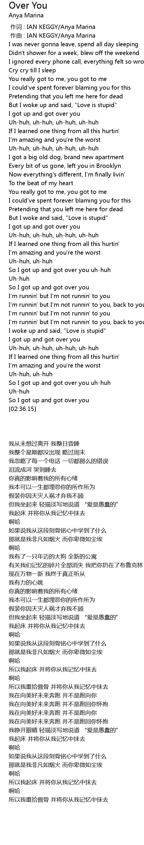 | [02:32.49] | So I got up and got over you |