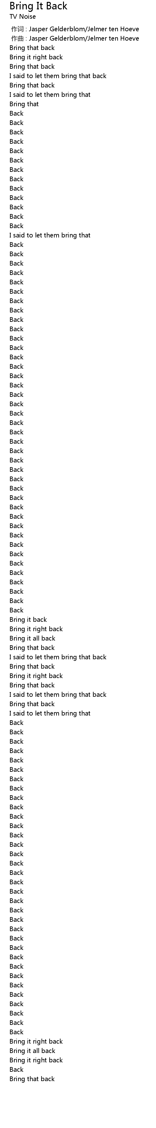 | 歌曲 | Bring It Back |