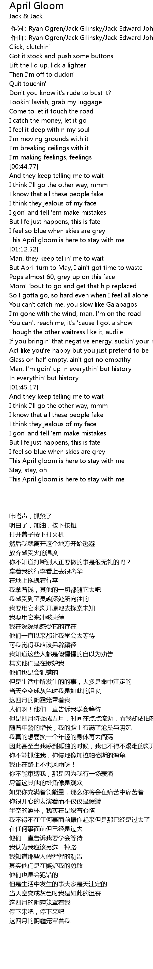 | 歌曲 | April Gloom |