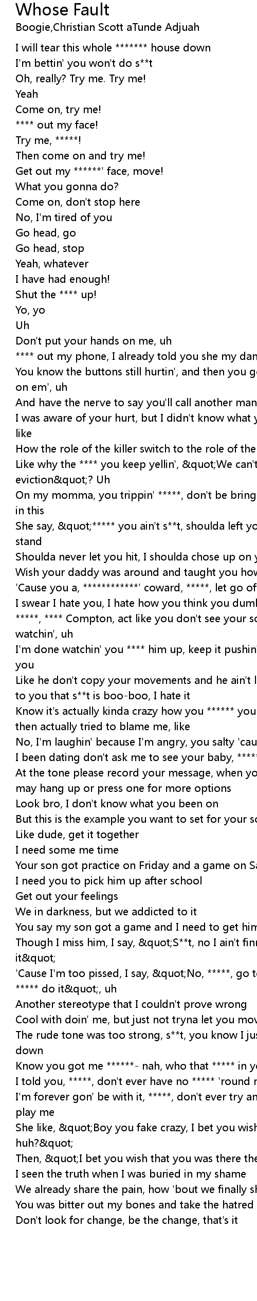 No, I'm laughin' because I'm angry, you salty 'cause I been dating don't ask me to see your baby, ******' *****" |
