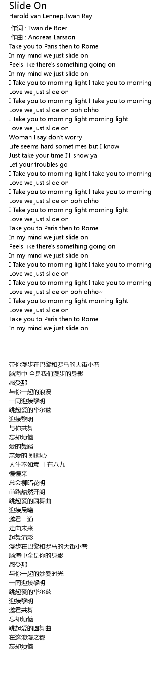 | [02:05.11] | Love we just slide on ooh ohho |