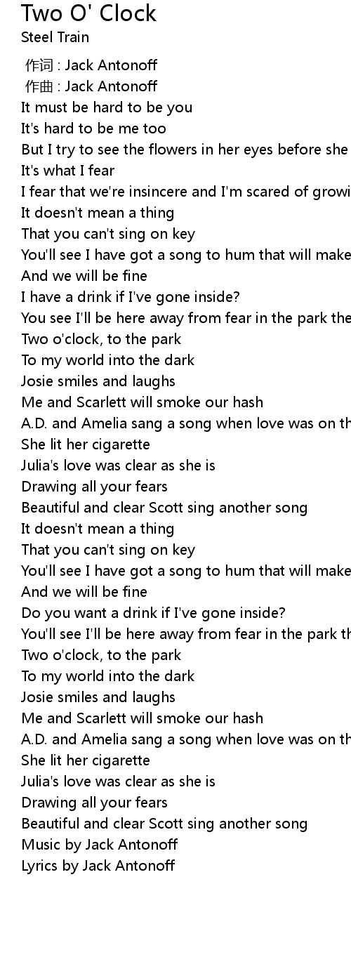 | 歌曲 | Two O' Clock |